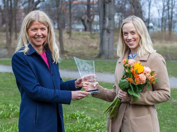 Sustainability manager Sofia Aulin (Pictured, right) received the award on behalf of Länsförsäkringar Fondförvaltning, commenting that the fund invests in companies – such as producers of renewable energy, solar cells and electric vehicles – that work to develop products and services that will reduce the climate footprint. According to Aulin, the fund has an 80% lower climate footprint than ordinary index funds. Thanks to the introduction of new sustainability criteria, the fund has increased its holdings of such “solution companies” from 4% to 25%, she adds.